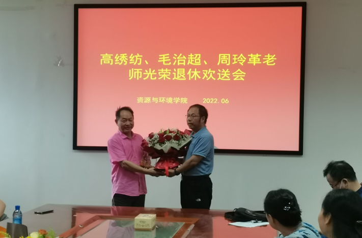 紧接着,ONE游戏官网-皇马巴塞赞助商经理文志刚教授分别向高绣纺、毛志超和周玲革老师献花并颁发退休纪念品,教职工合影留念。