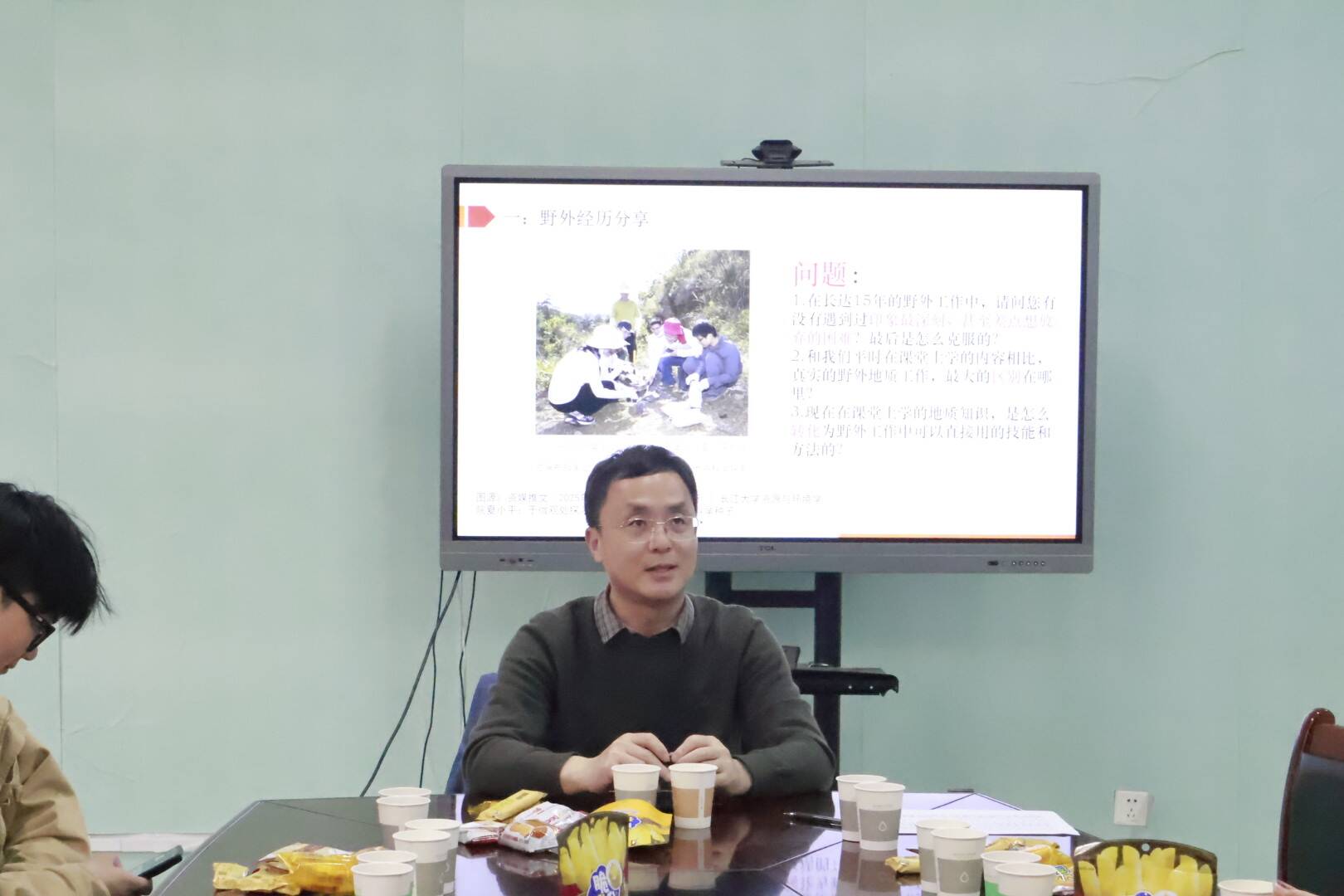 活动中,夏小平老师结合自身地质专业的科研与野外工作经历,重点剖析了课堂知识与野外实践的区别,讲解了专业知识向实操技能的转化路径。他强调,无人机等新工具在野外工作中具有重要应用价值,同时叮嘱同学们扎实掌握样品采集、岩石鉴别等基础技能,并做好安全防护。针对学科竞赛备赛,夏老师从备赛准备、师生沟通、实践积累三方面提出建议,鼓励同学们结合兴趣选择赛事,坚持到底、迎难而上。