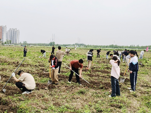 仪式结束后,劳动实践环节随即展开。同学们手持铁锹、锄头等工具有序进入实践区域,翻土、整地、挖坑……各个环节有条不紊地推进。从指尖播种到心田扎根,劳动的热忱在泥土与汗水间传递,先锋团成员分工协作,以亲手耕耘开启新一轮劳动成长之旅,在播种中体悟农耕智慧与劳动初心。