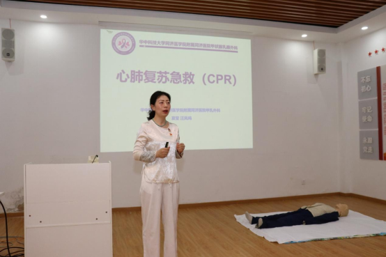 急救培训进校园 守护生命“黄金线。夏莹护士长为师生们系统讲解了心肺复苏(CPR)操作的全流程规范及自动体外除颤器(AED)的使用方法,重点阐释了成人实施CAB(胸外按压-开放气道-人工呼吸)顺序的原理、操作步骤及注意事项。讲座深入浅出,特别强调了心脏骤停后“黄金四分钟”施救的极端重要性,并对施救过程中的操作规范性和人文关怀提出明确要求。